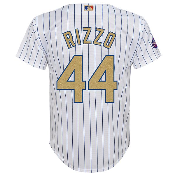 Browse women's chicago cubs gold lettering jerseys at fans edge sports. Brand new chicago cubs #44 anthony rizzo world series 3patch stitched jersey wht. The cubs will go gold on april 10 and 12. The back of the shirt has rizzo's last name and number in stitched royal letters with red piping. Majestic coolbase kris bryant chicago cubs gold world series jersey youth/boys m.