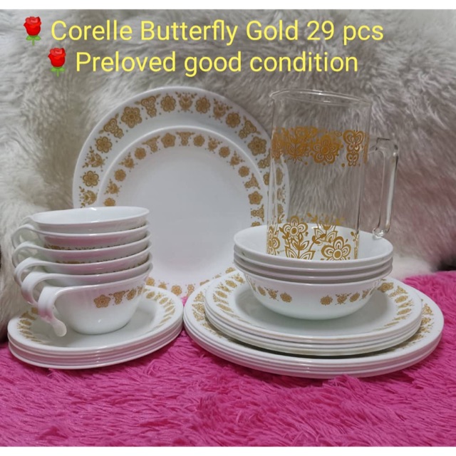 If you're trying to complete a set of corelle butterfly god it can be tough to find every piece you need at thrift stores and yard sales. Includes large dinner plates, luncheon plates, small plates, small bowls, gravy bo. Shipped with usps priority mail. Corelle ware 4 butterfly gold vintage saucers/plates. Corning ware corelle butterfly gold dinner service for 8.