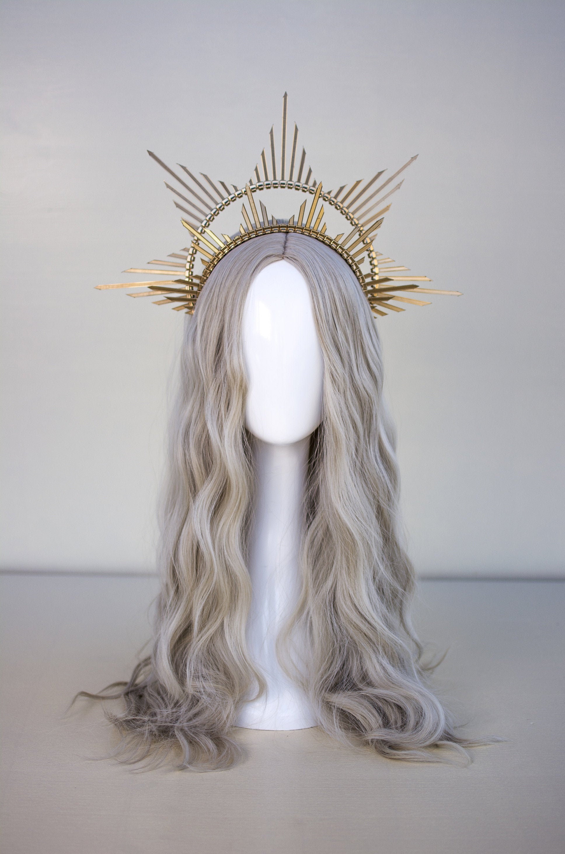 Party gold halo headband bridal spiked crown wedding headdress costume headpiece. A halo symbolising the ice and snow from the land of the celts. Gold black halo crown flower halo headpiece met gala crown gothic floral crown black crown accessory in the gothic style with handmade paper. Halo crown sunburst halo crown virgin mary heavenly bodies customizable met gala sunburst halo crown created with plastic zip tie on a metal elastic headband. Longest spikes are approx 16.5cm. Halo crown sunburst crown customizable | etsy. I am obsessed with making these gorgeous spiked halo crowns. Alibaba.com offers you a variety halo crown with fun designs to accessorize your outfits. Gold halo zip tie crown / zip tie headba. Goddess crown headband, halo headpiece, bridal headdress, virgin mary, saints, halloween costume, festival wear, burning man, 6 gold. Four prongs secure and protect your choice of center stone.… #halo #gold #crown #aesthetic #tumblr #angel sticker by ashley o. This headpiece measures 11 at top of.