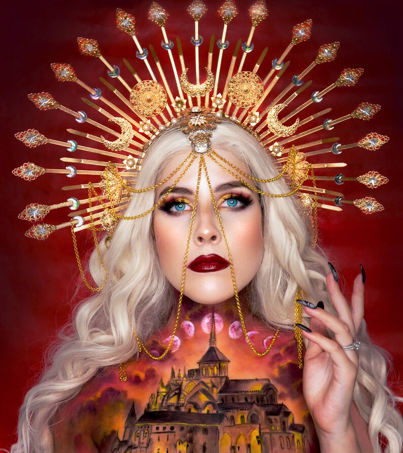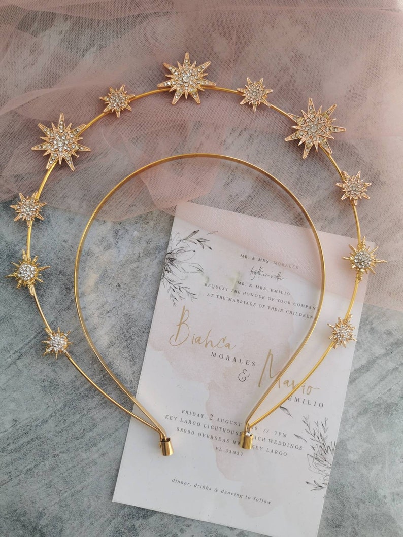 Gold Galaxy Halo crown. Gold Halo crown. Gold headband. Gold | Etsy from i.etsystatic.com Gold spike halo crown double layer hair hoop gold zip tie crown tiara headpiecetop rated girls golden stars halo crown hair band goddess headpiece virgin mary headbandtop rated. She is posed with a rainbow feather boa, swirling hair, a halo and gold crown. Be ready to shine with this headturning gold or silver crown a pure black version is also available on the following link: A halo symbolising the ice and snow from the land of the celts. Longest spikes are approx 16.5cm. Gold halo crown, glitter halo headpiece, festival crown, festival headpiece, met gala crown, sunburst crown, gold zip tie crown, mary crown. 6 gold halo headpiece with topaz crystals and beads, theatrical costuming, virgin mary, bridal crown, festival wear, halloween costume a perfect halo crown just for you! This headpiece measures 11 at top of.