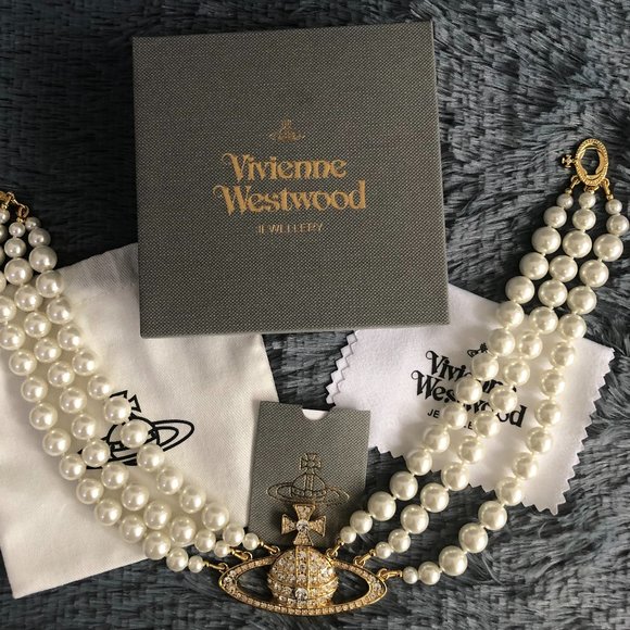 Vivienne westwood gold orb necklace extendable choke pearl white | jewellery & watches, costume jewellery, necklaces & pendants | ebay! There are 5290 vivienne westwood pearl necklace rose gold for sale on etsy, and they cost $45.69 on average. Discover the collection of women's necklaces from vivienne westwood to wear every day. Saturn orb pendant necklace very suitable for parties gold diamonds pearls three rows length 16 comes with box, dust bag and cleaning cloth. Shop vivienne westwood's latest designer collections on the official site today. Complete your look from the vivienne westwood necklace collection. Choker necklaces or pendant necklaces to add a touch of elegance to your looks. Shop women's vivienne westwood size os necklaces at a discounted price at poshmark. Recently, you might have noticed a specific pearl choker do the rounds on social media, so much so it's now been officially coined the tiktok necklace. Choker necklaces or pendant necklaces to add a touch of elegance to your looks. Vivienne westwood necklace black $820 $ 820. Gold pearl vivienne westwood necklace. Gold lock necklace new in box vivienne westwood gold pearl choker necklace.